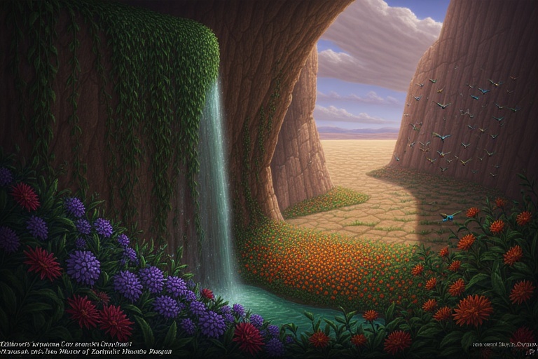 Zahirara, a land woven from the threads of sun and verdant life, unfolds like an ancient tapestry. The Verdant Scar Canyons, a testament to the earth's dramatic artistry, cleave the land. Their sheer, colossal walls are draped in a living cloak of vines, their emerald tendrils clinging with tenacious grace. Here, within the cool, humid embrace of perpetual shadow, a flora unknown to the arid expanse thrives. Exotic blooms unfurl in the perpetual twilight, their colors muted yet potent, their scents a rich perfume mingling with the pervasive dampness. The air is a constant symphony of cascading waterfalls, a ceaseless murmur that seems to carry the very secrets of the stone. These liquid veils spill into hidden pools, their surfaces catching the dappled sunlight, fracturing it into fleeting rainbows that dance with an ephemeral magic. Within these canyons, life beats with a fierce, untamed rhythm, a vibrant pulse at the very heart of a sun-scorched domain.
