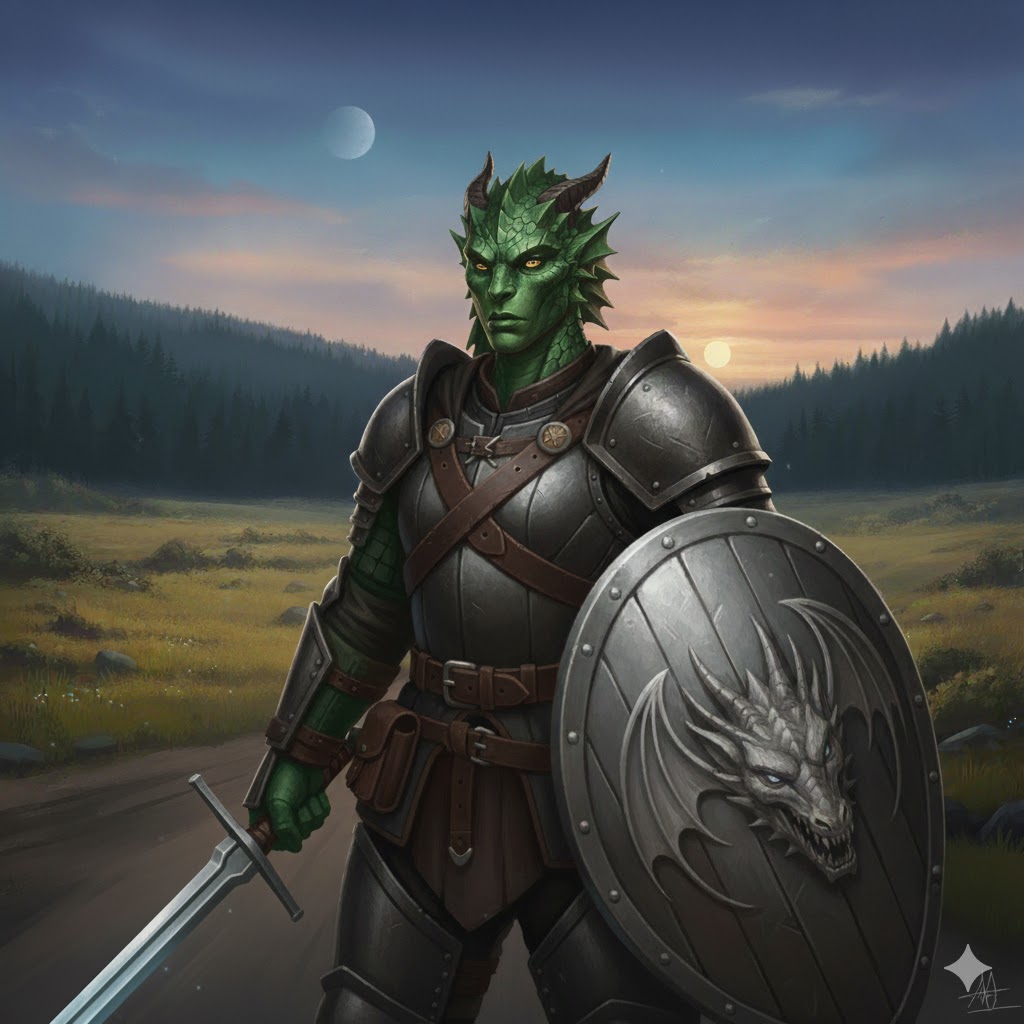 Grakka is a female green Dragonborn who is a caravan guard working for Jerek Stonehand. She wields a long sword and shield. Although she wears an expression that makes her look angry she is quick to laugh and is very high spirited. She has spent much of her free time getting to know the Companions of Iron Watch. The heroes have learned that she hopes to own a caravan of her own someday and is saving all of her earnings to do so.