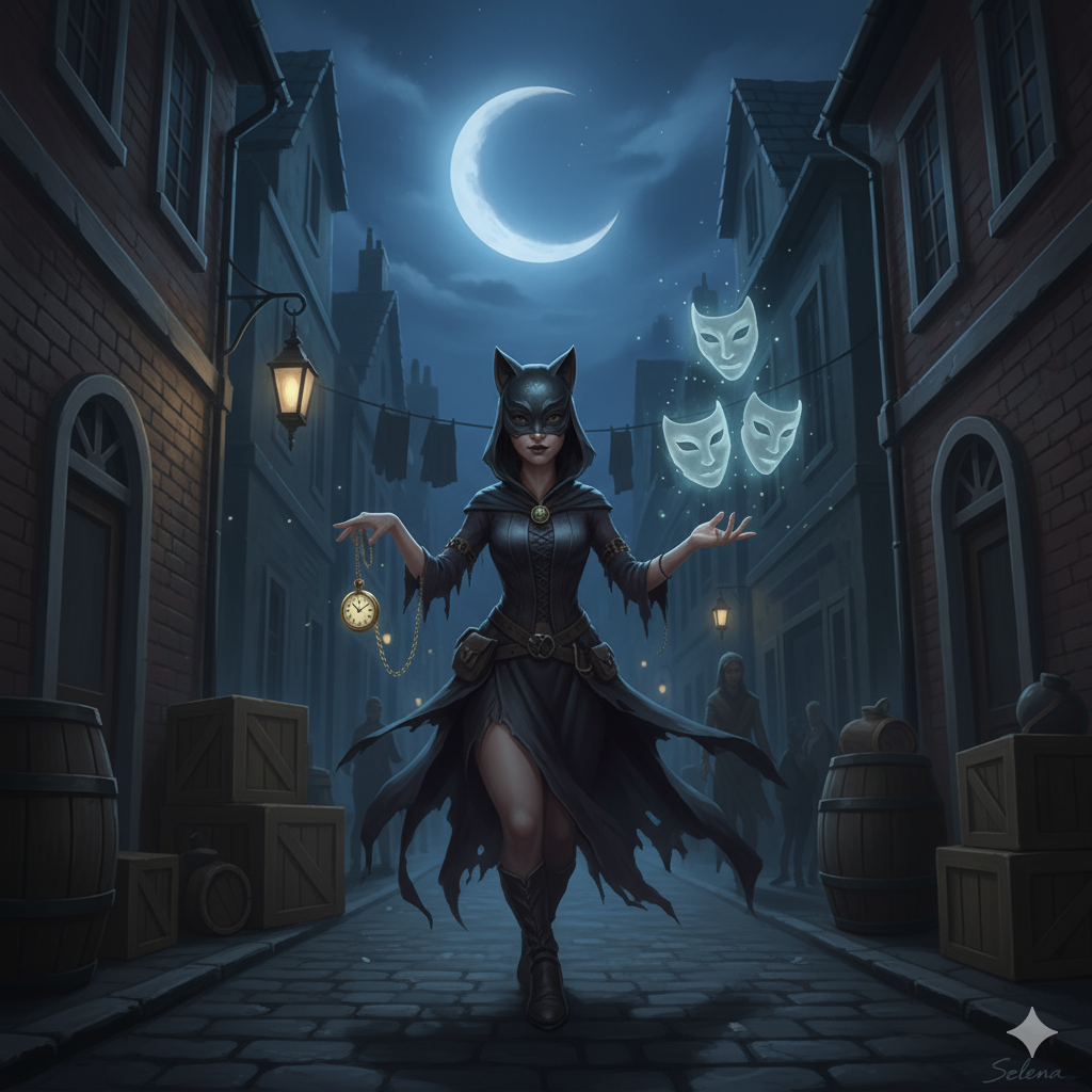 Selena is the Goddess of Thieves also know as the Trickster Goddess. Even her followers do not know her true form as she revels in mystery and deceit. Thieves worship her and pray to her for favor. Her avatar is a masked, slender, female most often a halfling or gnome. Clerics of Selena call themselves shades and often do not reveal themselves as clerics of Selena and often masquerade as thieves, gamblers or merchants.