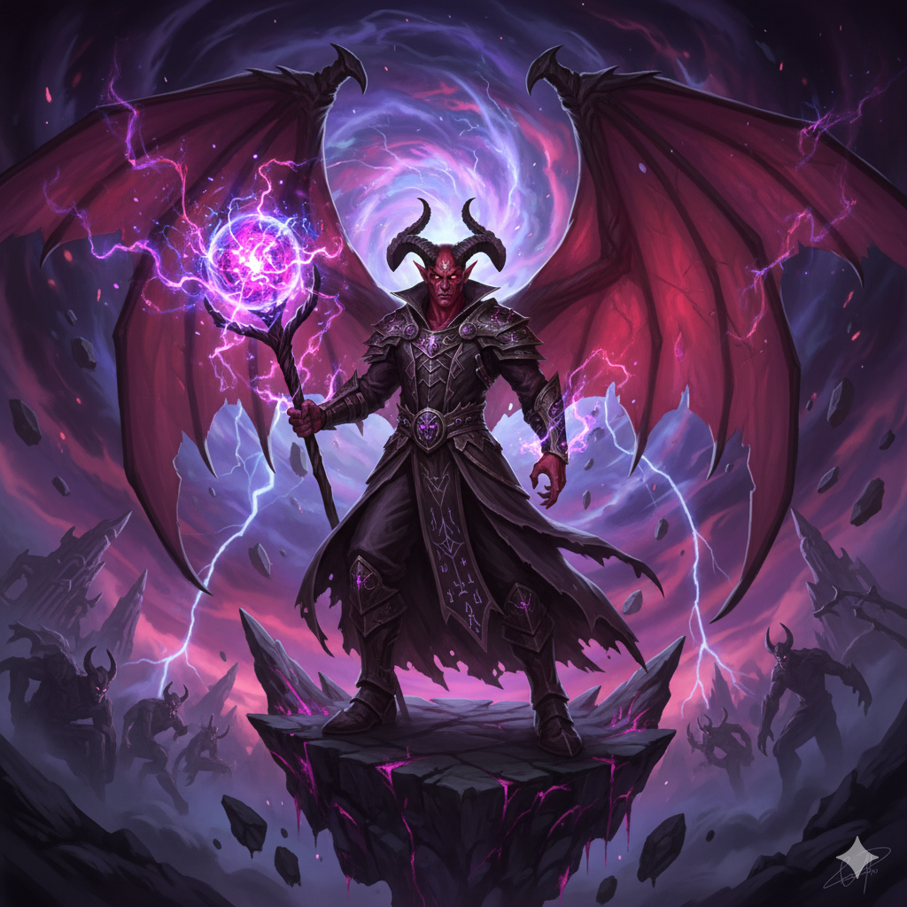 Thydos represents the raw, chaotic, power of the warp. He is most often depicted as a winged, tiefling, warlock holding a scepter with a ball of mystical energy in his hand. Clerics of Thydos call themselves warlocks or witches. They are malicious and manipulative driven by their whims and desires.