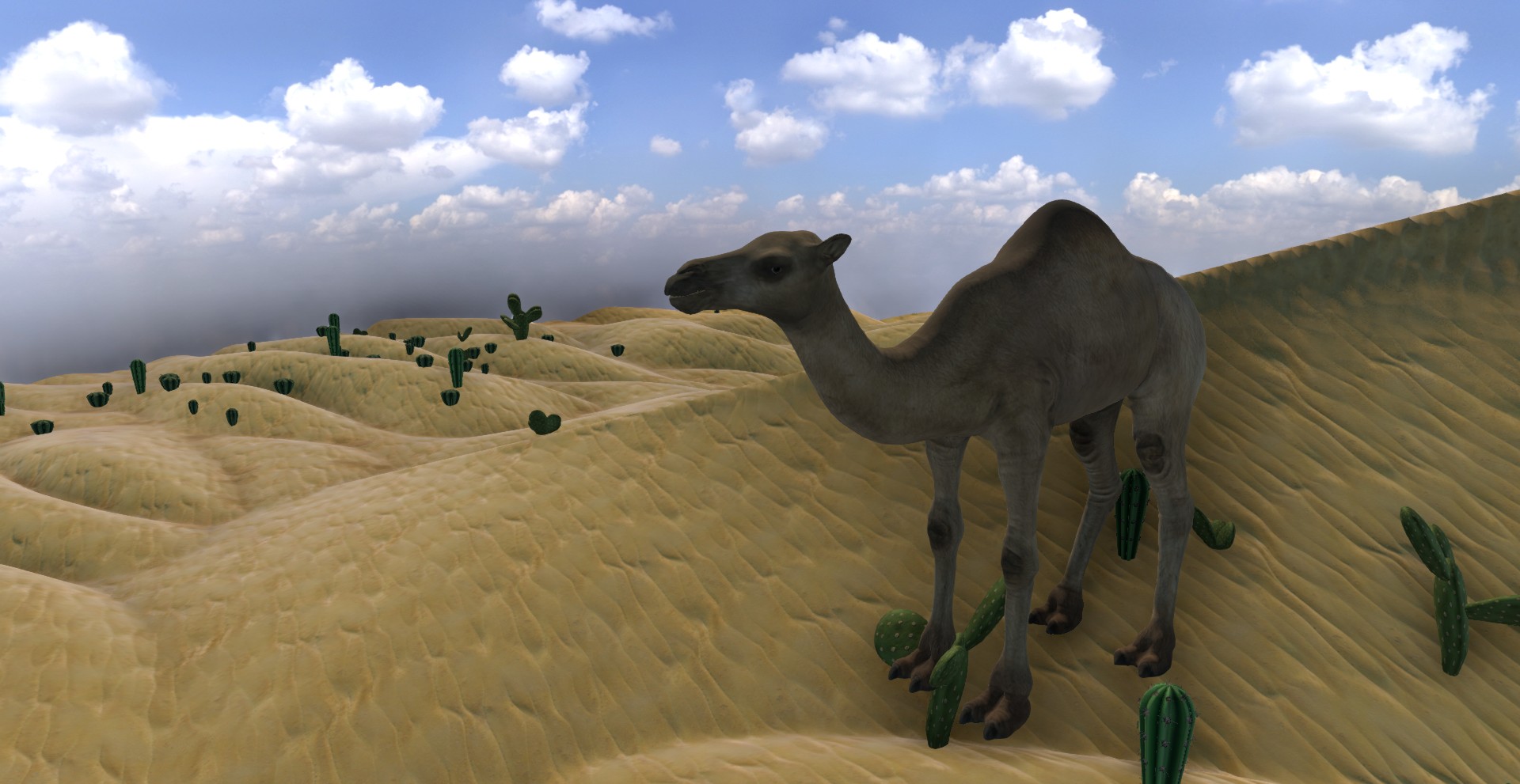 A large dromedary endemic to desert lands, camels are well adapted to life in arid, waterless lands.