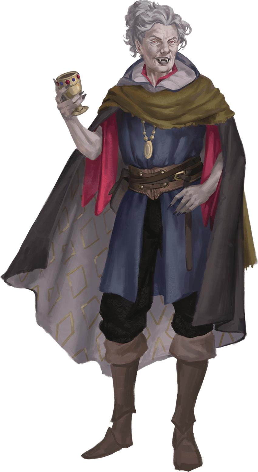 Proprietor of Sangora Sanguinaries in Evernight, Sangora is a centuries-old vampire with sunken eyes and a shock of long, white hair. She is inquisitive and happy to gossip.