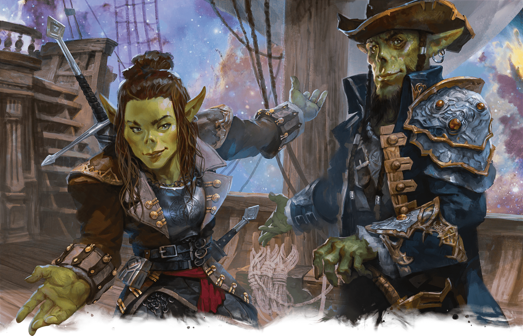 Lysan and Zastra are Gith siblings who serve as deckhands and fighters aboard the Moondancer. Veterans of astral travel, they work in perfect sync during shipboard maneuvers and battles alike. Lysan is calm and deliberate, favoring disciplined swordplay and careful tactics, while Zastra is fierce and impulsive, thriving in the chaos of close combat. Their contrasting styles complement each other, making them a formidable pair both on deck and in a fight.