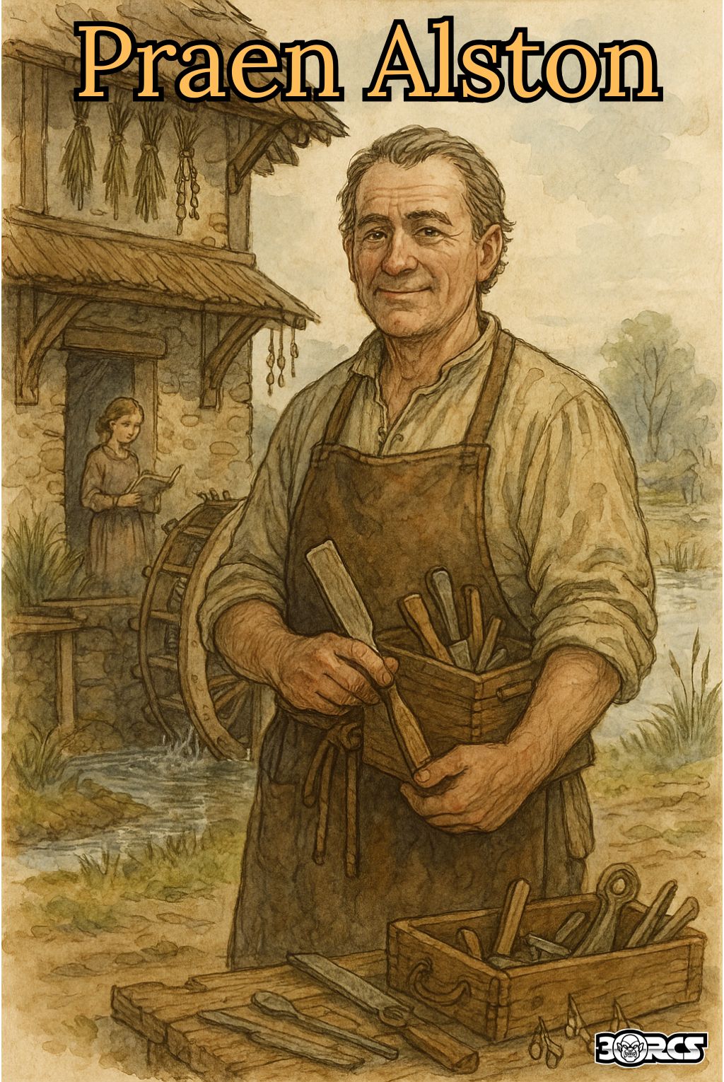 Broad-handed, soft-voiced, clothes clean even in mud weather. Famous locally for turning “bad wood into good work.” Once trained city apprentices in Verbobonc; after his wife’s death, he refused guild offers and came home for the children.