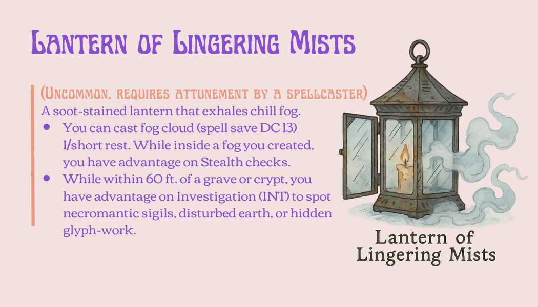 Lantern of Lingering Mists (Uncommon, requires attunement by a spellcaster)