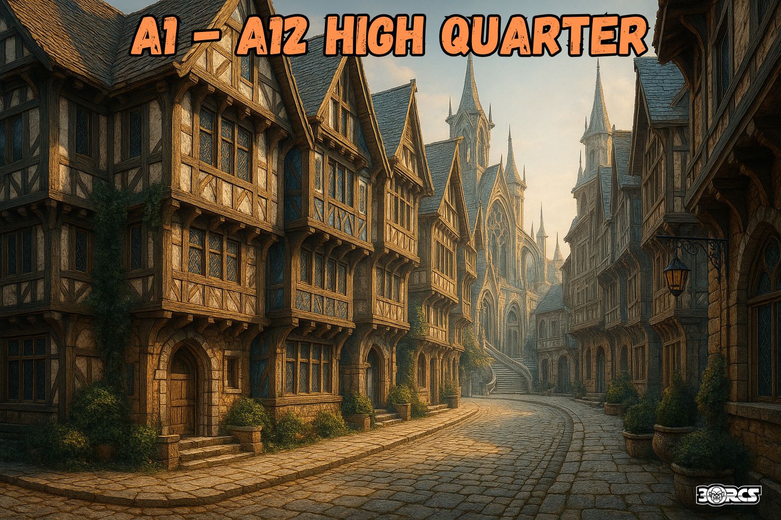 The High Quarter is Verbobonc’s elite residential district, both socially and literally elevated above the rest of the city. Built on a central hill that rises 20–30 feet above surrounding neighborhoods, it houses the wealthiest families, powerful merchants, and key political players of the viscounty.