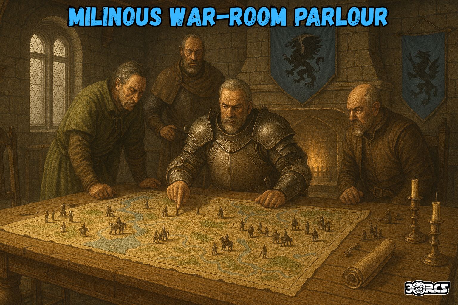 - War-Room Parlour: Off the hall lies Simon’s favored parlour, dominated by a large campaign table bearing maps of the Viscounty, Kron Hills, and Gnarley Forest. Here Lord Milinous and his Mounted Borderer captains plan routes, discuss raids, and argue over troop placements.