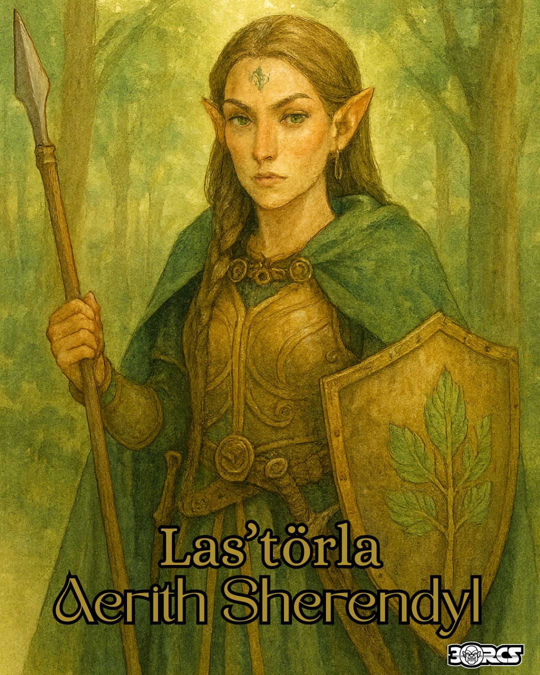 “Las’törla Aerith Sherendyl—soldier-queen of a village that trains like a fortress, smiles seldom, and keeps every promise sharpened.”