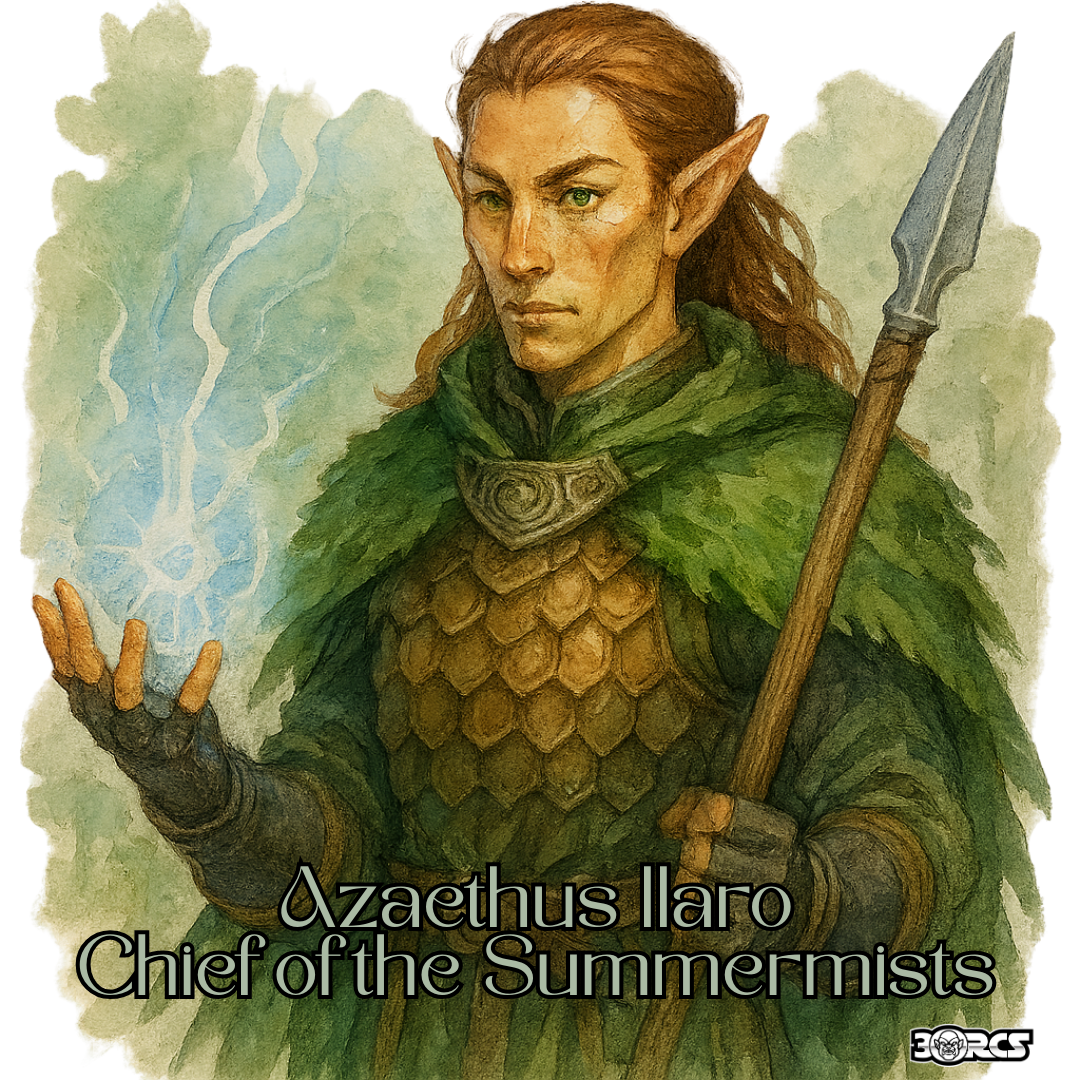 Azaethus Ilaro leads the Summermists, one of Sherendyl’s four smaller tribes. A battlefield arcanist of rare discipline, he marries Evocation and Abjuration to erase threats while leaving the forest unharmed—a reputation that wins him both awe and caution. As arcane adviser to Las’törla Aerith, he backs hard readiness but clashes politically with her admiration for Celene, Faerie Kingdom of. Azaethus argues that the future of the wood elves runs through Verbobonc, not grey-elf chancelleries. He keeps an open corridor to Gilathadar Telva of Clan Meldarin to align oaths and policy.