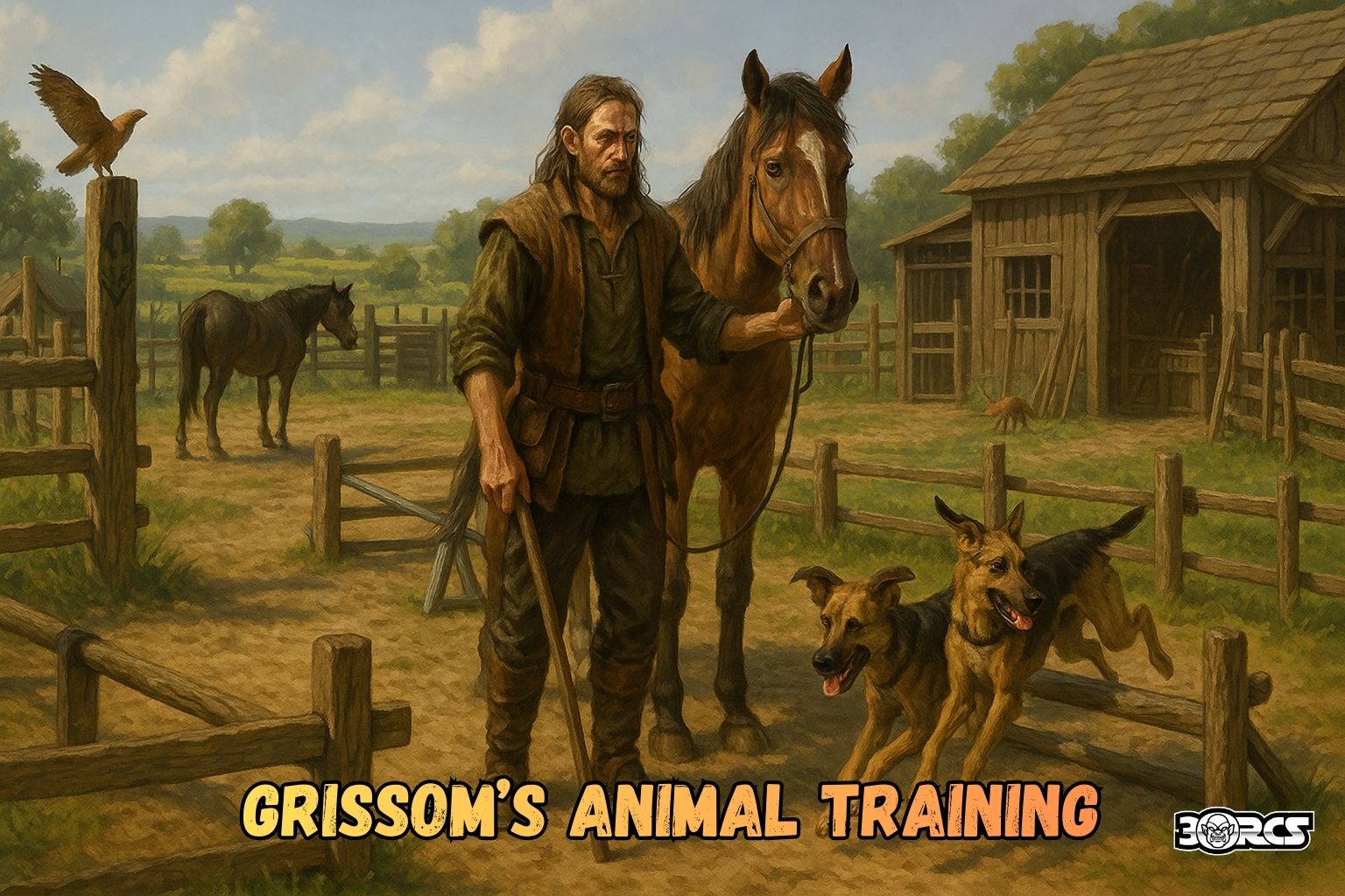 Just south of Verbobonc, where fenced pastures meet the Low Road, stands Grissom’s Animal Training—a sprawling, dusty ranch where horses, hounds, and stranger beasts learn discipline under the watchful eye of a half-elven druid of Obad-Hai, the Shalm.