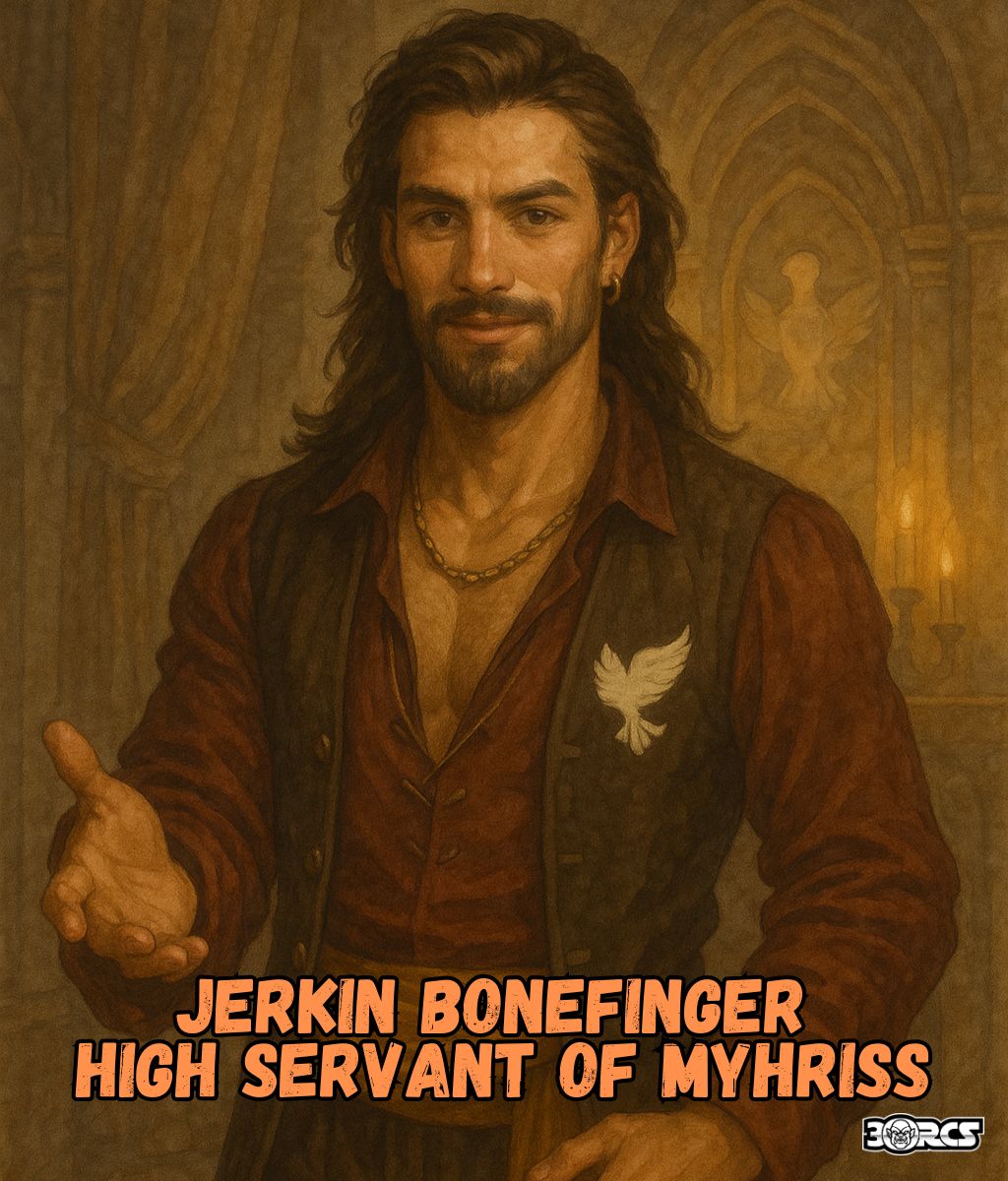 A stunningly handsome romantic from the Wild Coast, Jerkin Bonefinger runs Verbobonc’s most controversial shrine of Myhriss as a public house of perfumes, match-making, and mercy—fighting loneliness with beauty, laughter, and carefully guided desire.