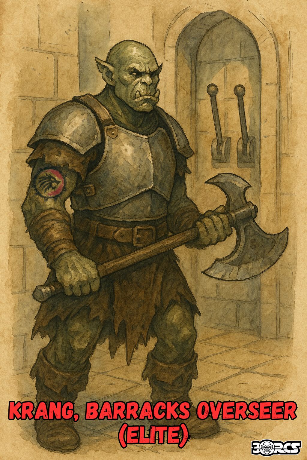 - Command Bellow (Recharge 5–6). Two allied orcs that can see/hear Krang each move up to 10 ft as a reaction.