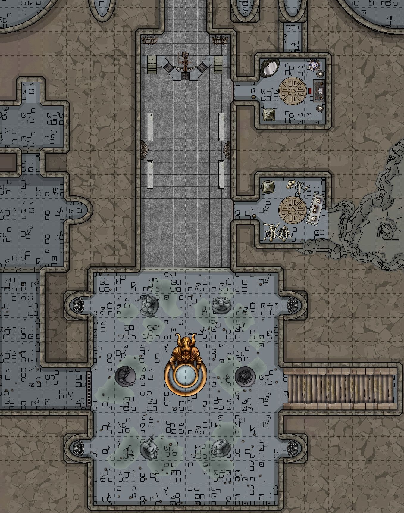 - Plinth cache (Investigation DC 14): A sliding panel under Fortubo’s base holds a mason’s measuring square (counts as tools, mason’s kit), a small ruby chalk (10 uses; draws lines that last 24h), and a bronze key-rod that may interact with later doors.