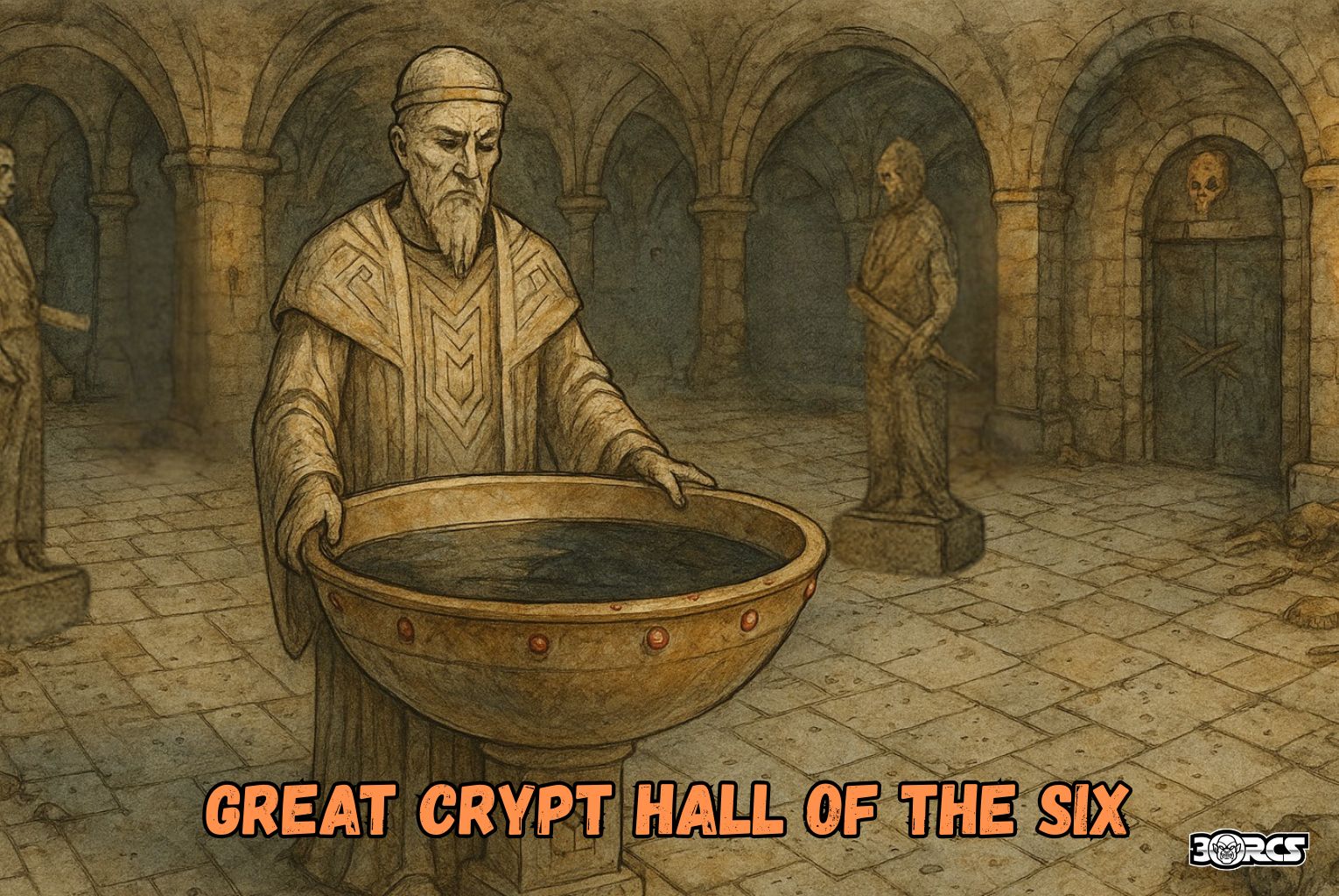 - All six correct: The liquid glows ruby-gold, then drains in six neat sheets as the north wall slides away at six measured beats. The opening remains for 1 hour or until resealed from beyond.
