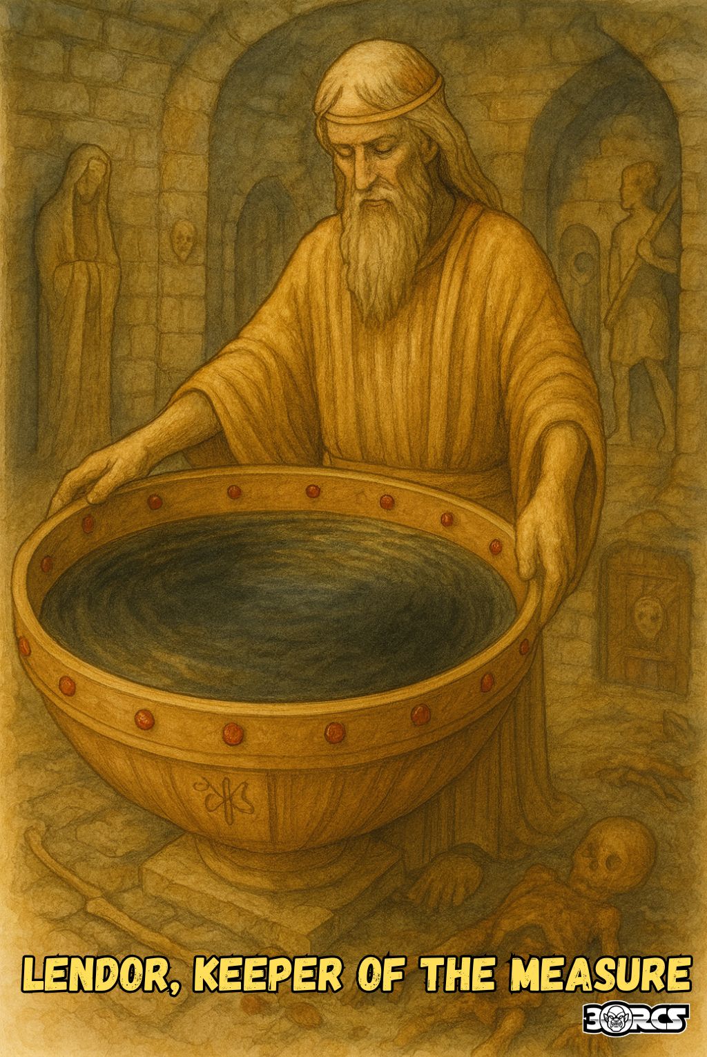 - Icon keys: mini-illuminations pairing Lendor with instruments of measure (rings/ticks), Wee Jas with ruby and funerary writ, Jascar with an anvil and oath tablet, Pyremius with a dagger over a flame.
