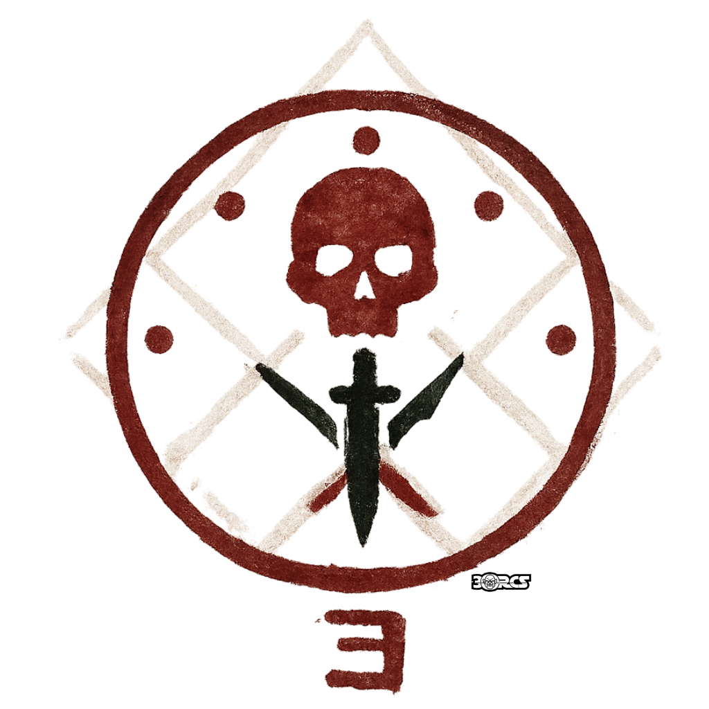 - Placement in L2-03: Chalk-and-resin version marked on the north double doors (Six Diamonds) and on the Custodian’s staff head, as if co-opting authority. One smaller mark is stamped in ruby wax on the sternums of the prepared orc corpses.