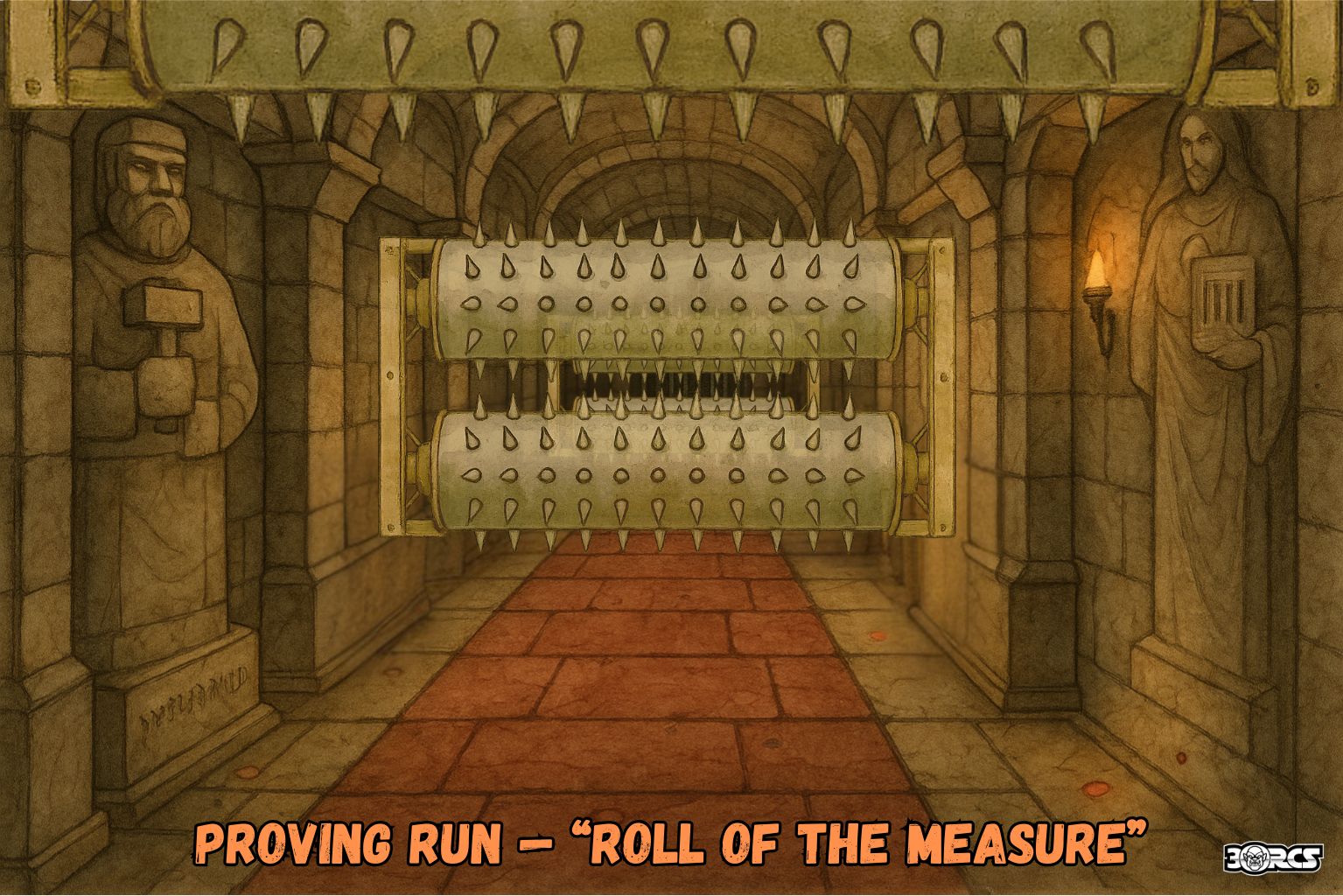 - End: A wide portcullis (15 ft) into a 30-ft-diam. round room (to be keyed later).