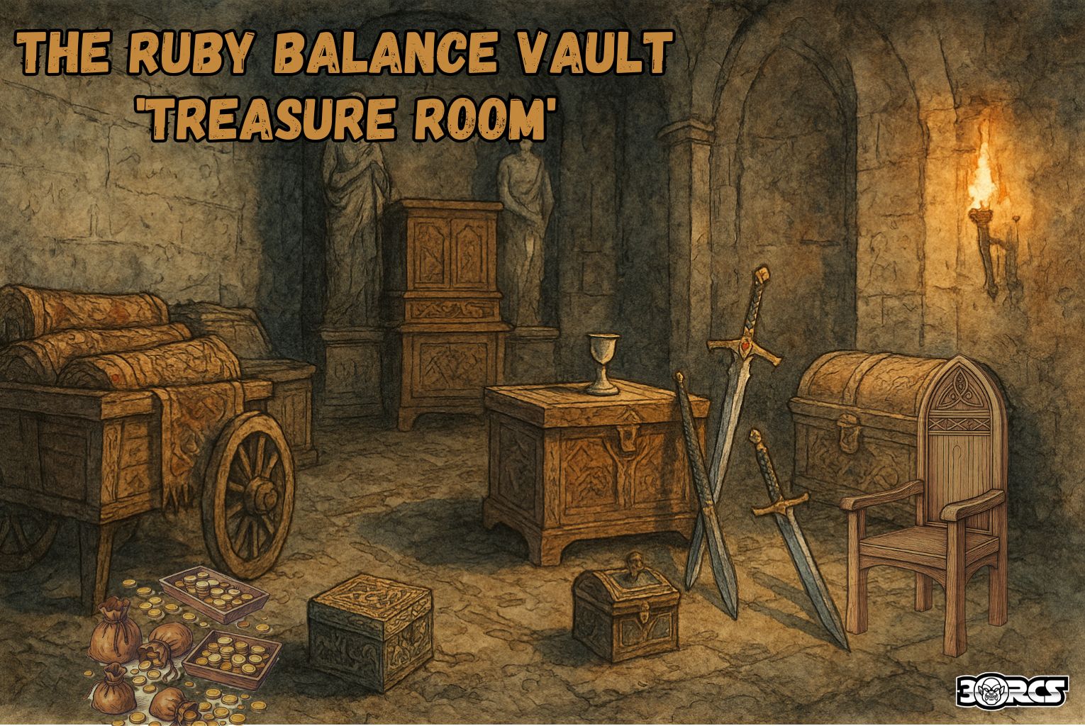 - Cart logistics. The vault’s two-wheeled cart can carry 600–800 lb; a perfect prop for a fast haul if the party wants to clear the room before the orcs crash in.