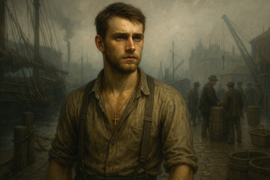 Born among the warehouses and river fog of the East End, Rob grew up in the rhythm of the Thames — the grind of rope, the sting of salt, the endless pull of the tide. He went to work young, hauling cargo and learning the moods of water and men alike. It was on the river that the rumours began: whispers that clung to him like damp clothing, turning shipmates into strangers and laughter into fists.
