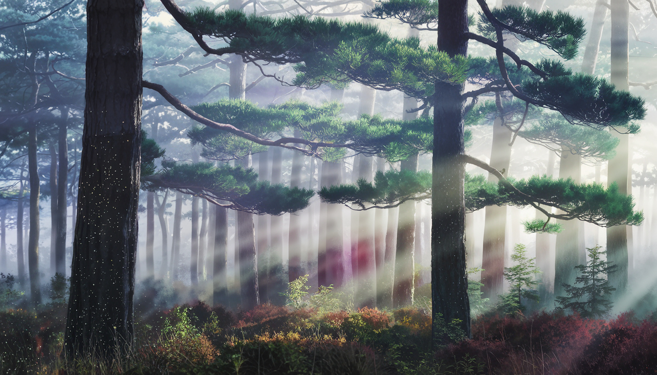 The climate in the Murmuring Pines is cool, ranging from 23°F (-5°C) in winter to 68°F (20°C) in summer. Extra Mist rolls in from the surrounding areas, particularly in the mornings and late evenings. The Mist interacts with the natural magic of the place, occasionally giving rise to visions and phenomena that are both beautiful and bewildering.