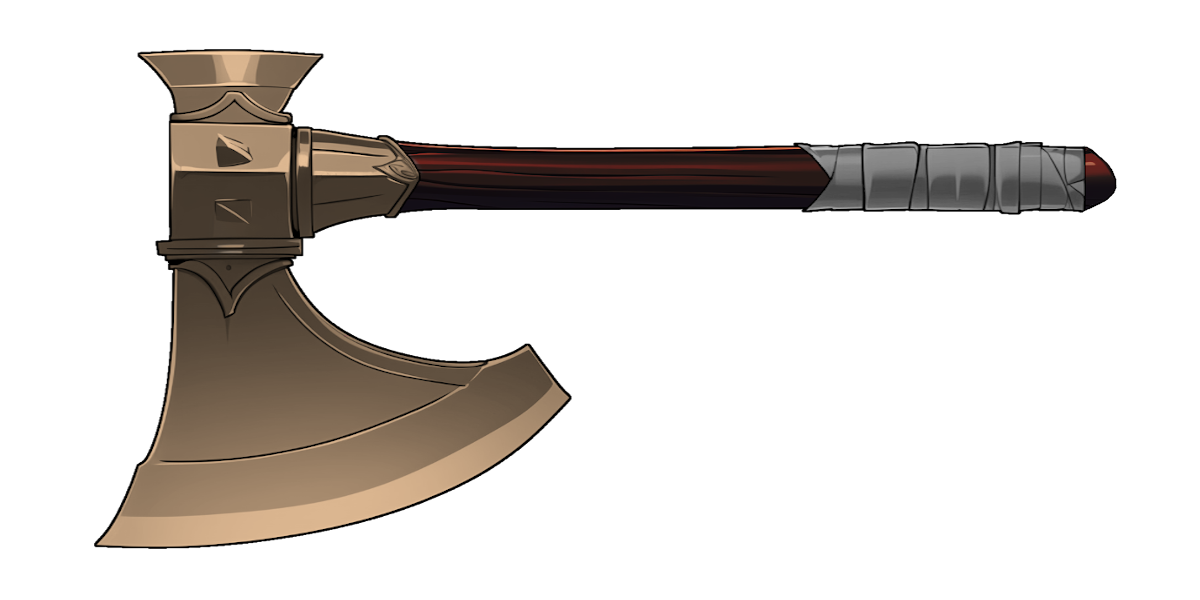 Casselian hand axes tend to have a flat top and a distinct hammer head. They are also more favored by specialized mages, so the axe heads are often made of solid Bronze.