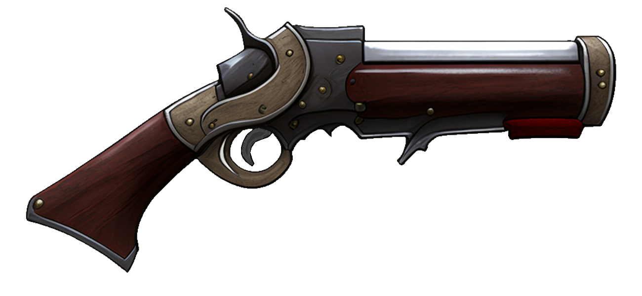 Pistols are firearms that can be effectively used with one hand. They are small and light enough that they can be easily concealed. Many people across Vreathe have a pistols or two for self defense, but they are almost never used in an actual battle. The single-shot nature of them means they are only good for one well placed shot, only to be blocked by a mana shield.