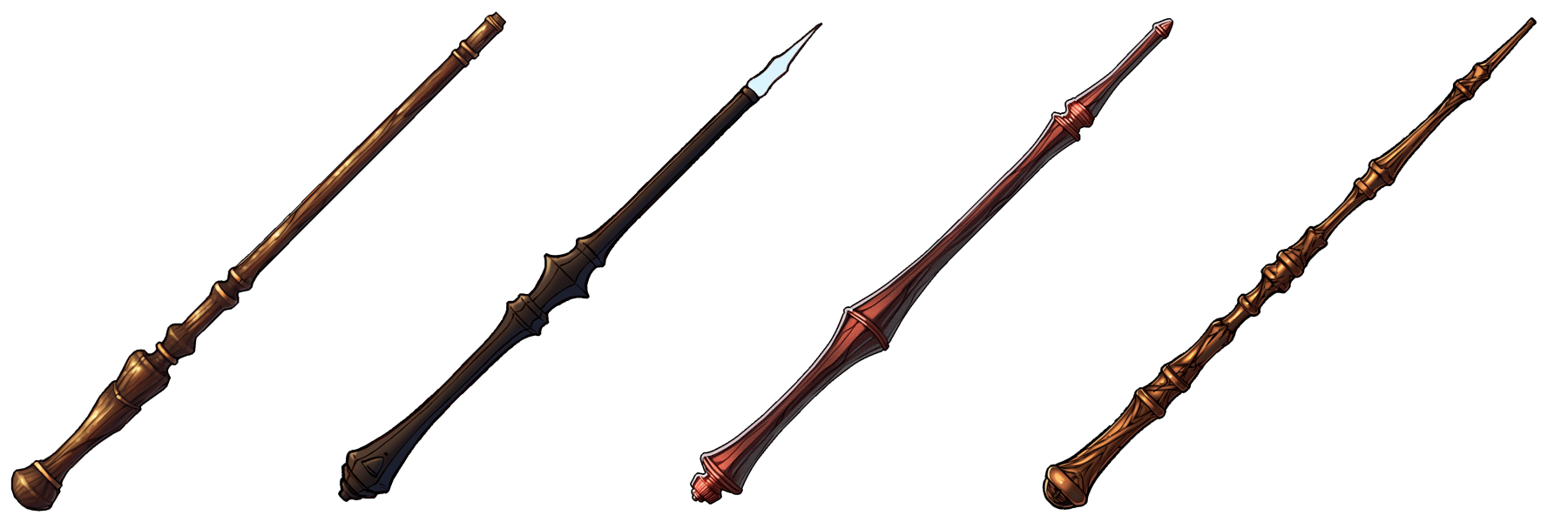 Magic Wands typically have an overall length of 10 - 20 inches and consist of an aethercite core inside of any number of various species of wood. Sometimes the core is visible at the end of the wand but generally it is entirely surrounded by the wood.