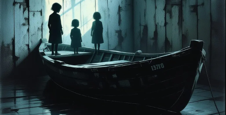 Now they walk beside us. One sits by my bunk when I wake. Looks like my girl back home, hair over her face, knees hugged tight. She don’t move. She just is. And when I try to touch her, my hand passes through the dark. Men talk about going overboard. Some already have. Say the water’s whispering their names. I told ‘em it’s in their heads. But tonight, I saw something I can’t shake. My own shadow weren’t where it should be. It was kneeling beside the small one, like it was trying to hold her.