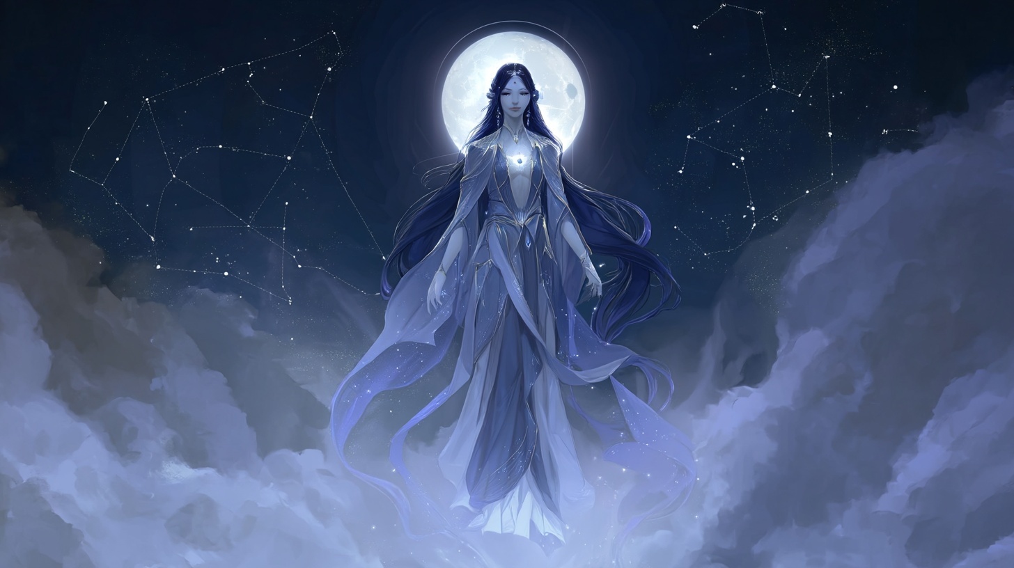 She is often imagined as a soft-spoken goddess, draped in silver light, who offers clarity to those who listen in stillness.
