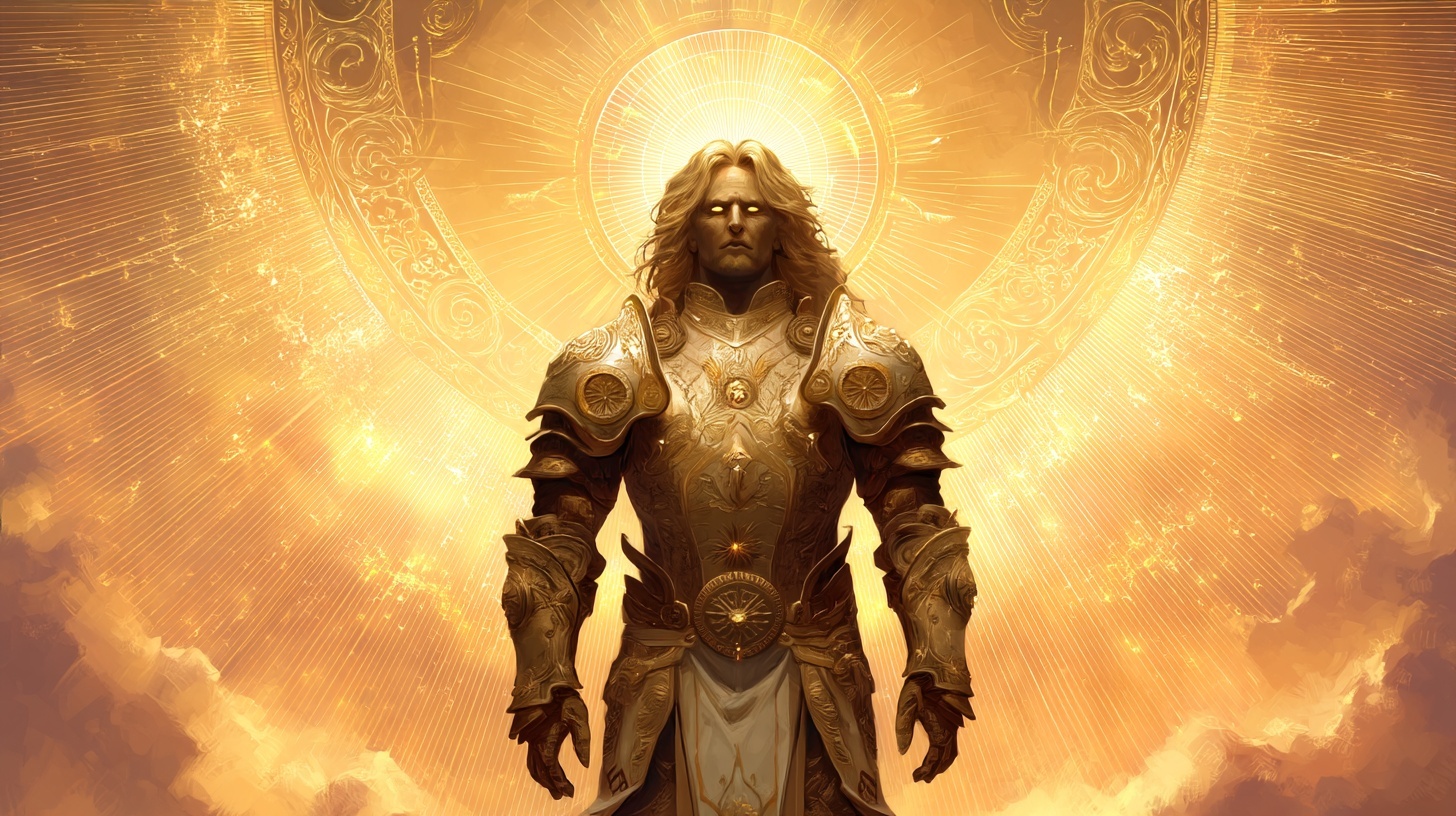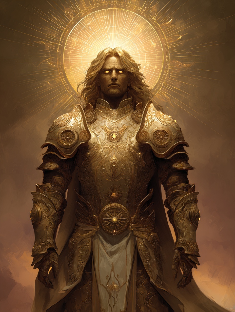 light, justice, protection, and the warmth of life itself. Revered as a divine father-figure, he stands as a symbol of noble rule, righteous law, and unwavering guardianship. He is the protector of mortals and the eternal beacon that repels darkness.