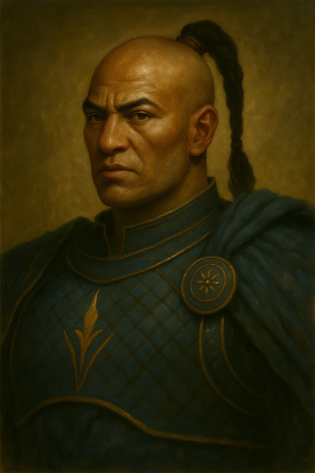 Raymond Kelfix was born on 4 November 45 BFE in Scorchhold, the capital of Dravonell. He was the eldest son of Daren Kelfix, a career officer in the Centurion Legion, and his wife Elira, daughter of a line of desert levy commanders. The Kelfix family had served in successive campaigns along the Bleeding Dunes, and Raymond’s upbringing was rooted in a strict martial household. He spent much of his youth in the training yards that ringed Scorchhold Bastion, where boys of military families were drilled in spear and shield practice from an early age. Accounts describe him as unusually large for his age, often placed among older recruits during sparring. Though not formally inducted into the Legion, he was attached to its encampments as a youth auxiliary, carrying supplies and observing maneuvers in the desert passes. By his late teens he had begun accompanying patrols on the outer oases, where raiding bands and rogue cultists were a constant threat. Reports indicate an early skirmish near the Oasis of Tervan, where the young Kelfix reportedly held the line after his unit standard was struck down.Military Career
