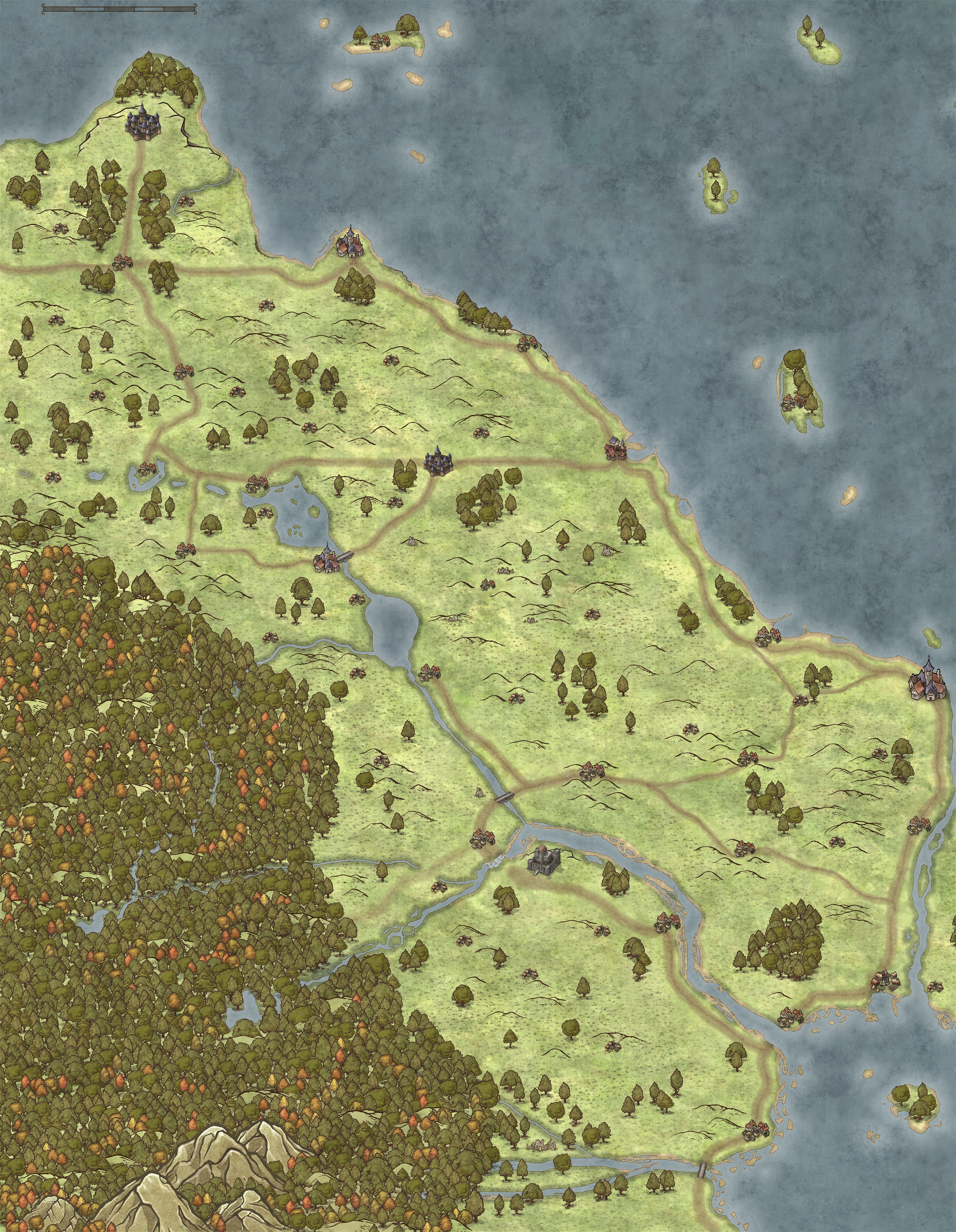 The western region of the Vinelands, the Blossom Fields are a land of rolling hills and quiet vales, dotted with lakes and covered in a blanket of colorful flowers.
