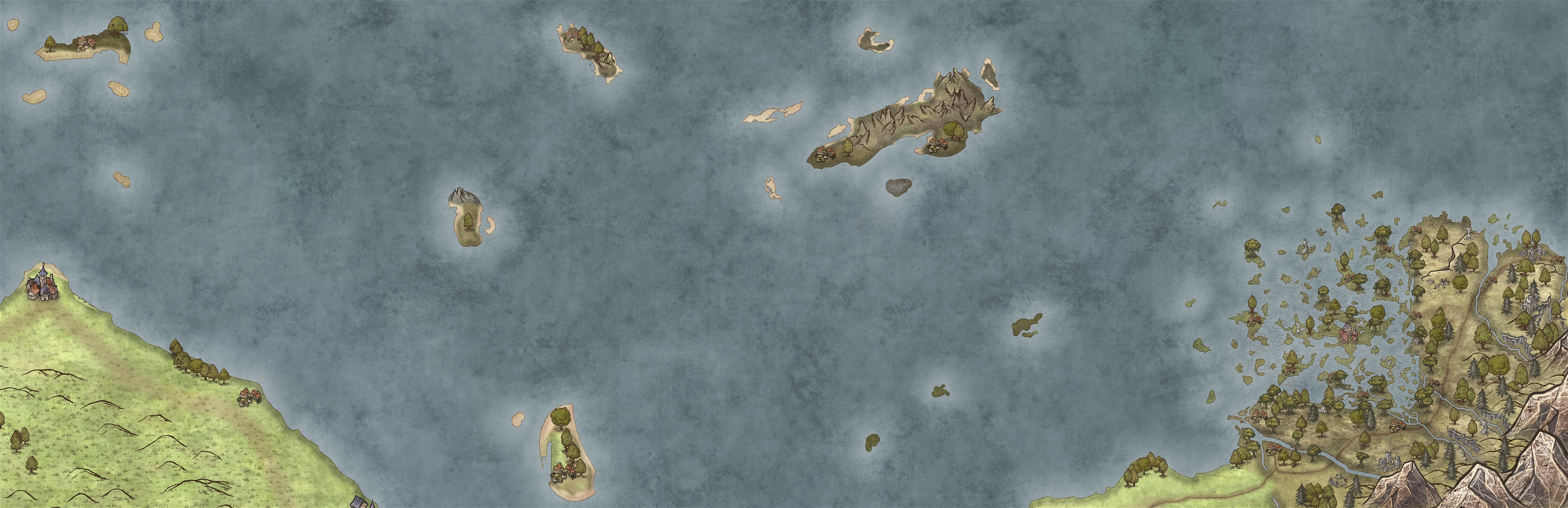 The Cragtiere is a small corner of the Vinelands, from which the Cawgyr is ruled - the chain of Ayr islands from Bay de Noc to the Vestral Downs. It is ruled from Fenoffoi, the movable city of House Ayr. House Ayr is more of a culture than an organized family. The lordship rotates between the patriarchs of various Ayr tribes, each controlling different islands.