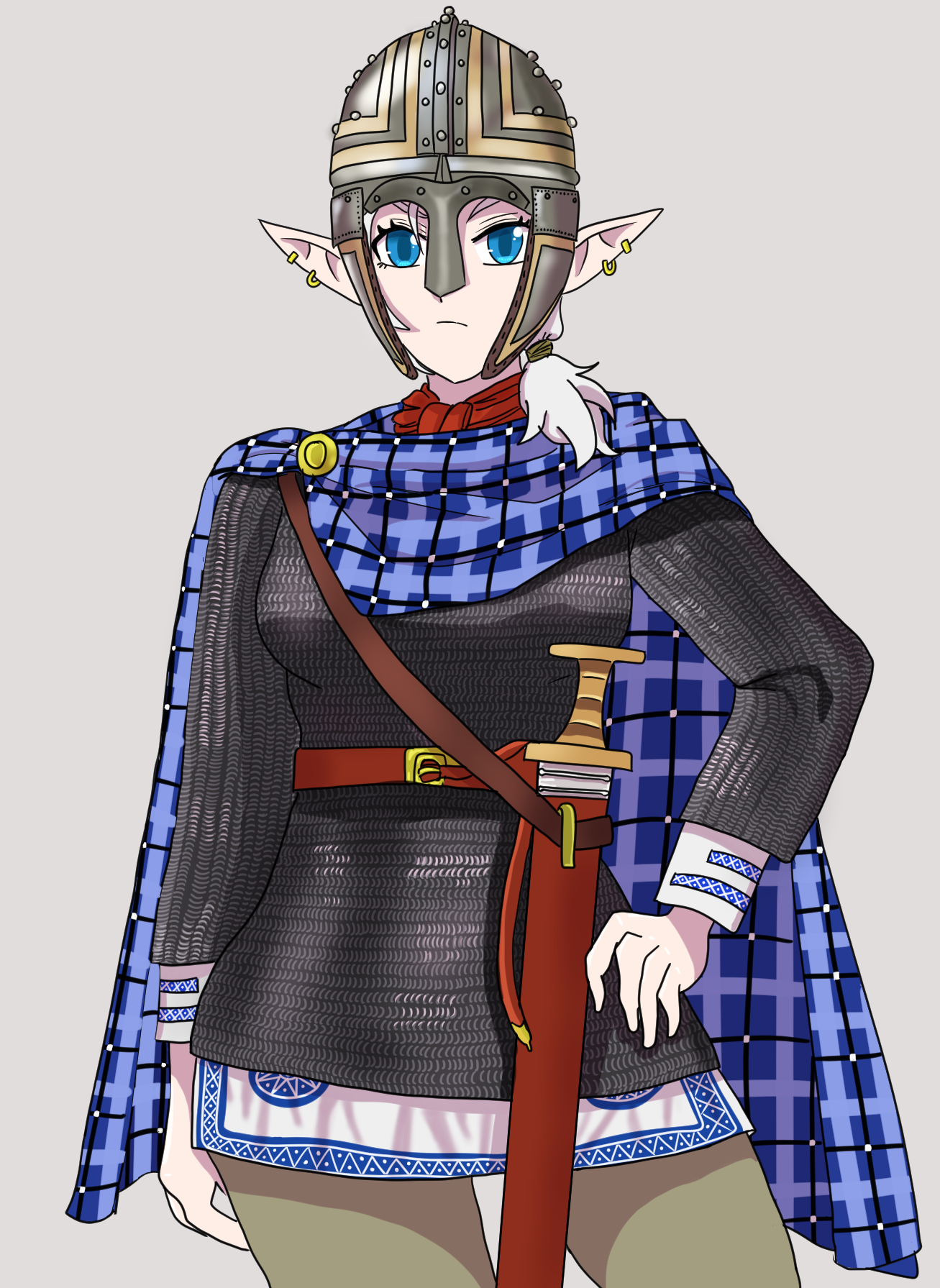 Aelwen wears some very interesting garments and items in her daily live. For example the earrings she wears were bought by her in Blati when she served as a mercenary in the Blatian territories. The fibula she wears on her cloak has a special meaning for her as it was her father's. He had bought it from a merchant from ancient Ikaria, according to him, months before the siege and subsequent fall of the ancient imperial capital, in 460 AP. Talking about her cloak, it is made of wool, something ideal for the cold region she lives in and the tartan that decorates it is the traditional tartan design of the citizens of Yetlas. Her sword is also a reminder of her time as a mercenary in the Imperial armies. And her knife, which she carries on her right side, belonged to her mother, and was one of the weapons she used as a war dancer. She also has a diploma certificate of her acquired Blatian citizenship after her years of military service, although Aelwen hasn't made use of it nor expressing her pride like for it as many of her fellow countrymen. "Yes it's a sign of prestige and it can be useful but I don't live in the Empire, so, what's the point?", she said once.Likes and Dislikes