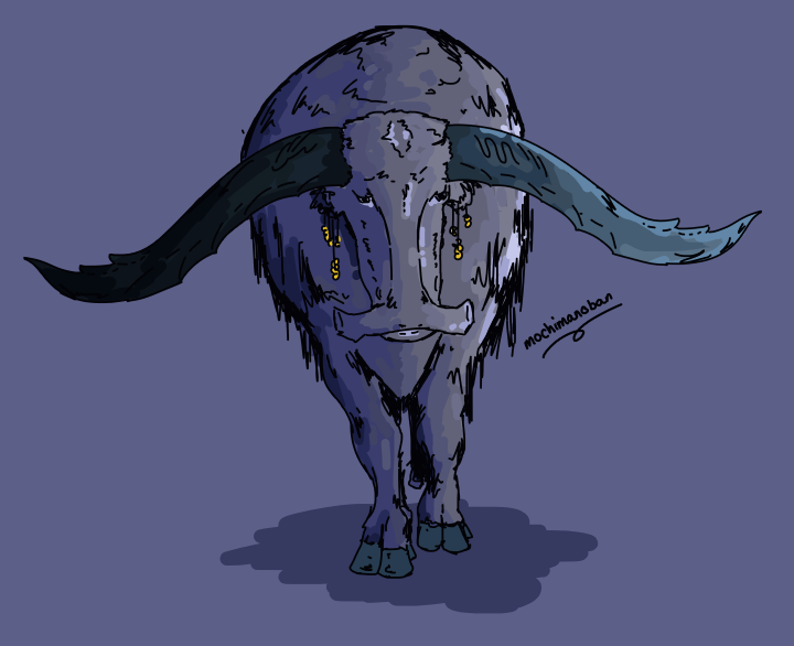 With a swirling black, white, and brown plumage, marble mud ducks stick out like a sore thumb in the Mudlands. They bark and scream to scare away threats.Mirehorns are apex predators on their home planet. These ones are so... calm? It's scary. Something in the air must be messing with their heads.