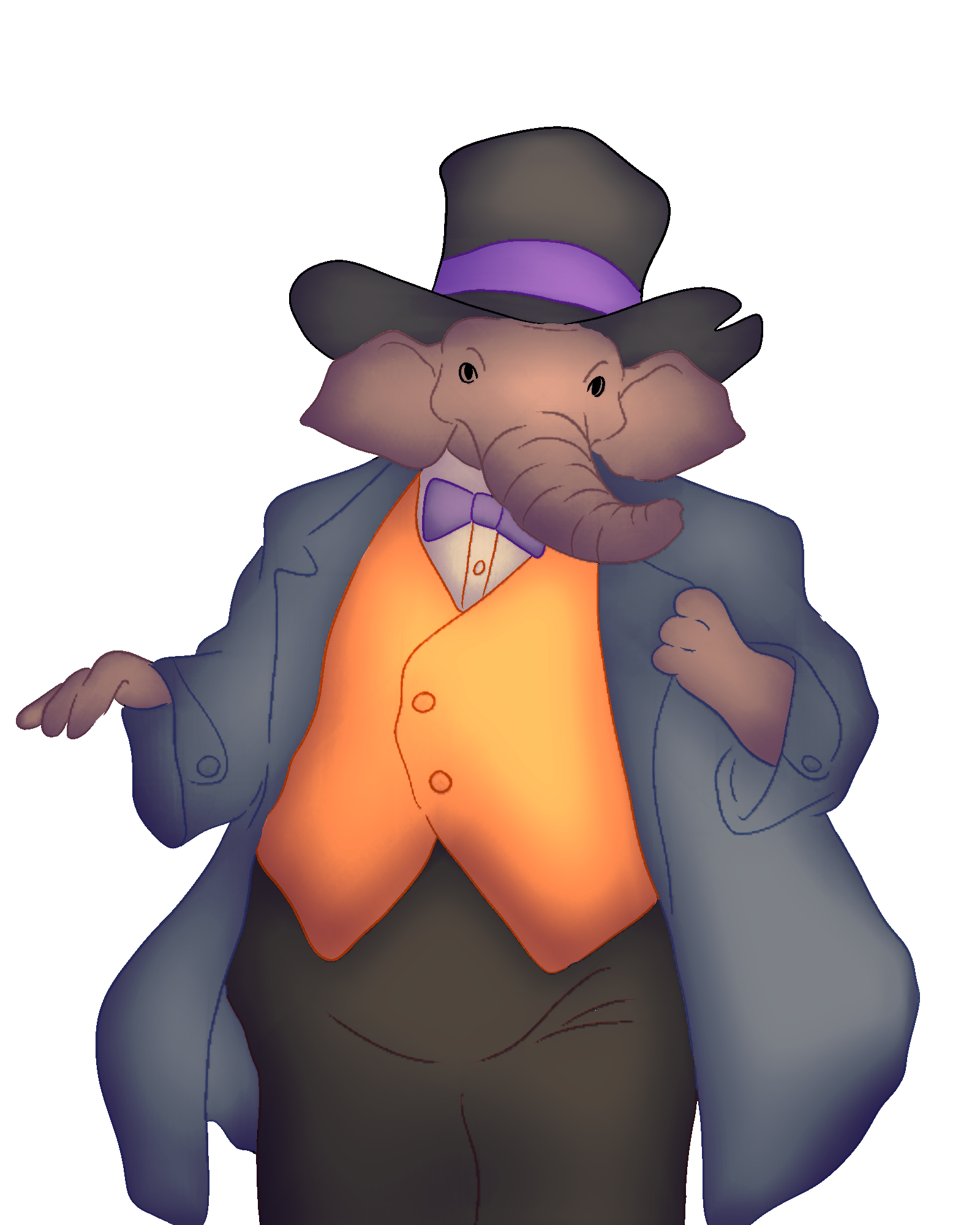 Known as “Mr Moneybags,” was a towering elephant-man spy for King Brewick, infamous for his gaudy silks, etched tusks, and reckless generosity. While feeding the king intelligence from Pyzel Harbour’s Parliament, he secretly enriched himself through black market trades, believing his treachery hidden. His life of excess and paranoia ended in suicide, leaving behind debts, dangerous secrets, and a trail of lovers and enemies.