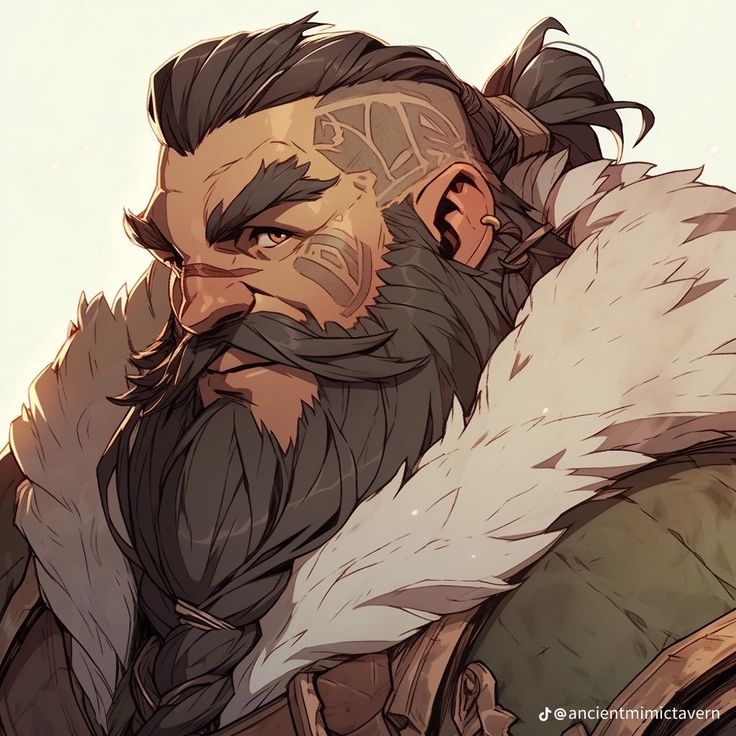 Coming from a line of great dwarven heroes, Anathor's career began as an esteemed emissary from the Dwarfholds of the North to the Kingdom of Falinor. One day, however, Anathor was called back to Stonebeard Citadel to wage war against their age-old enemy, the orc clans of the Mountains of Sky. Anathor found his stride in battle and rose through the ranks to captain. During one particular battle, an event occurred that changed the trajectory of Anathor’s life forever. The records of the event are fuzzy, however, it’s stated that Anathor went into a cave with an army of 3000 dwarves vs 200 orcs and came out as the sole survivor. When Anathor returned to his home, before anyone could question him of the event, he vanished from sight. Some claim he was so ashamed of his defeat that he couldn't stand the sight of his parents. Others believe had become an orc spy and led his troops into the hands of the enemy. Whatever happened, the event tarnished the Stormgrip reputation forever, and his name has been erased from the names of royalty of the Dwarfholds. Since that event, Anathor has appeared in scattered cities east of Falinor. He mostly finds work as mercenary, and, when work is slow, as poet and songwriter. Despite his gruff appearance, many are surprised by his mirthful countenance. He will often make acquaintances with various types of travelers and tell stories of dwarven legends and mythical creatures. Content to leave his past behind, Anathor hopes to make a new life for himself, better than anything he left behind.