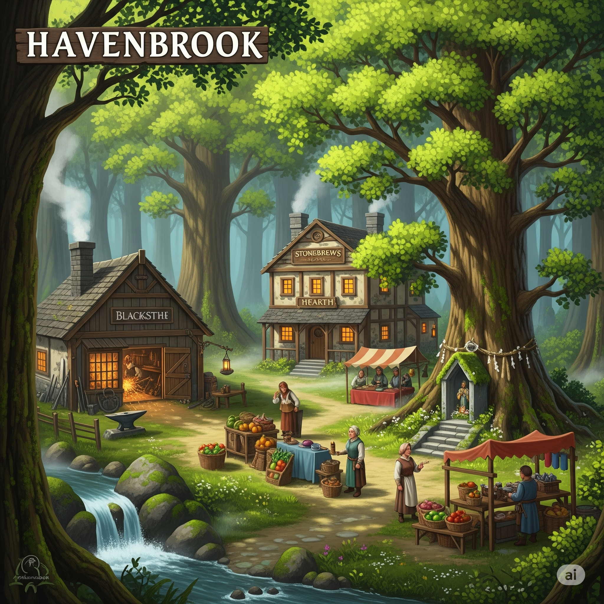 Luneth északi erdőségeinek szívében, a sűrű lombok között megbújik egy apró, de különleges település: Havenbrook. Ez a falu nem csupán otthon, hanem menedék – egy hely, ahol a világ zajai elcsitulnak, és ahol a béke nem csak álom, hanem valóság.