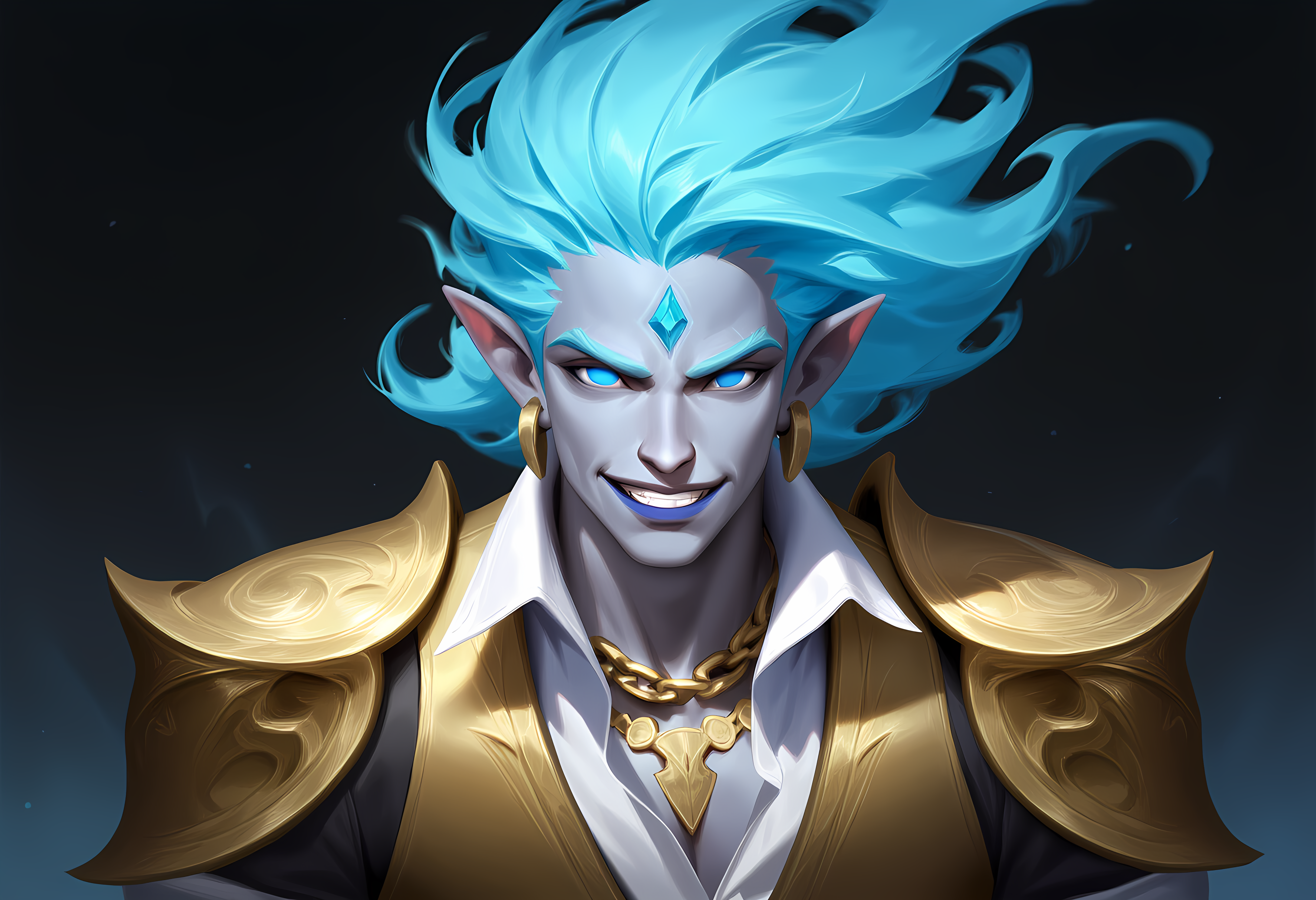 They tend toward muted coloration, with skin of milky white, pale gray, or powder blue. They have fair hair—white, gray, or pale blonde—but richly colored eyes, which are usually gray, violet or blue.